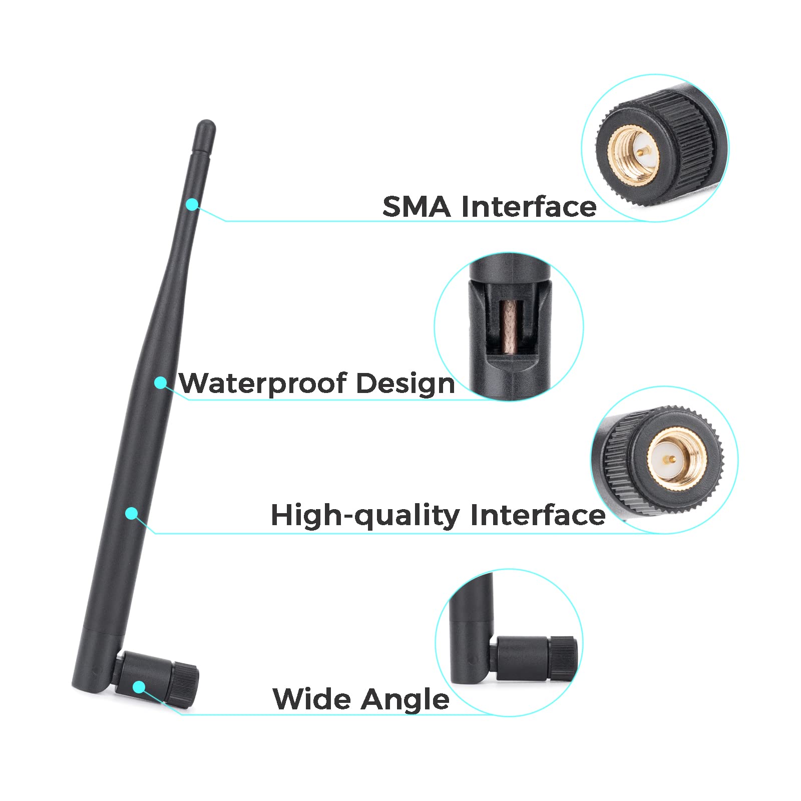 - Specifications: SMA-J [MALE PLUG], length:195mm, 90-degree tilt, and 360-degree swivel on antennas